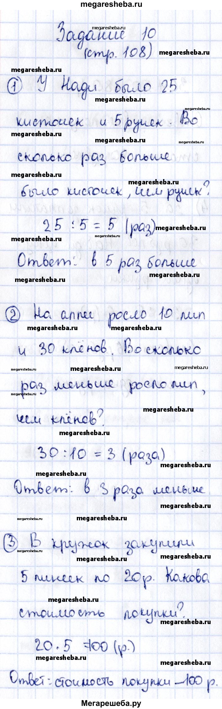 Подробный решебник (ГДЗ) по Математике за 3 (третий) класс - готовый ответ часть 2 страница 107-108 - 10. Авторы учебника: Моро, Бантова, Бельтюкова. Издательство: Просвещение 2015-2025.