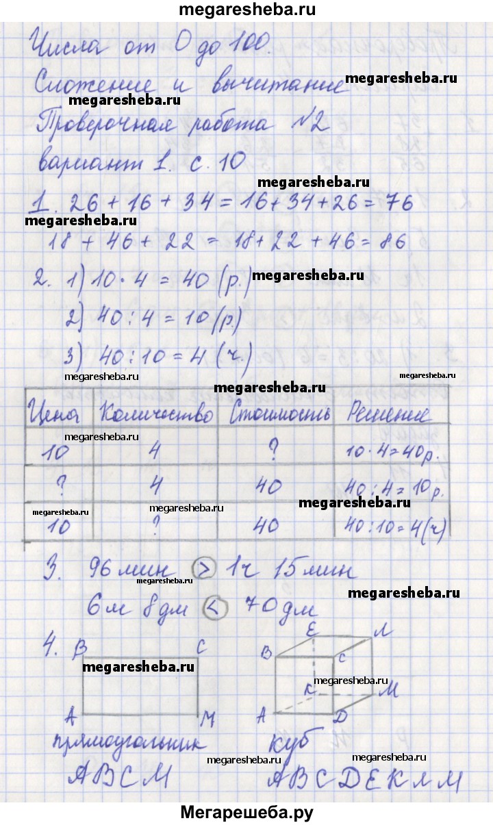 ГДЗ по математике 3 класс Миракова проверочные работы страница - 10