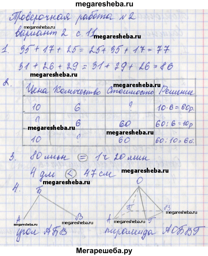 Подробный решебник (ГДЗ) по Математике за 3 (третий) класс проверочные работы - готовый ответ страница - 11. Авторы учебника: Миракова, Никифорова. Издательство: Просвещение 2017-2023.