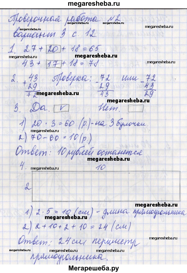 ГДЗ по математике 3 класс Миракова проверочные работы страница - 12