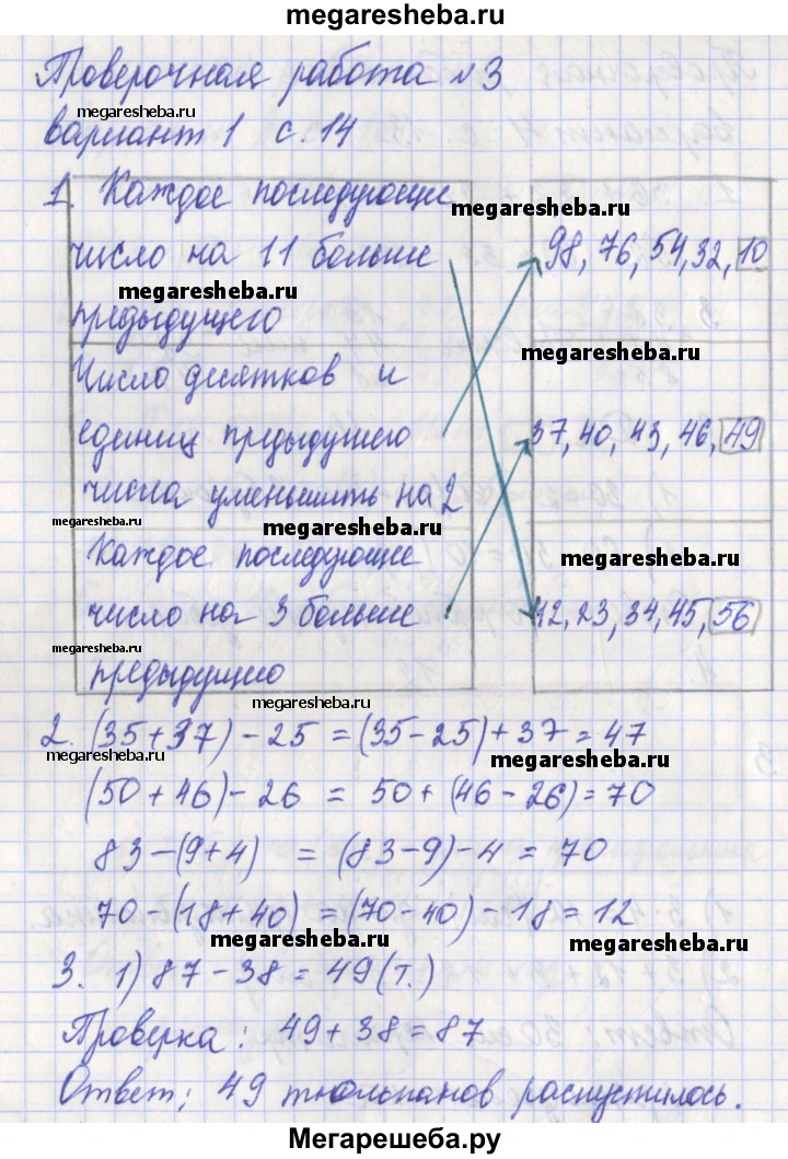 ГДЗ по математике 3 класс Миракова проверочные работы страница - 14