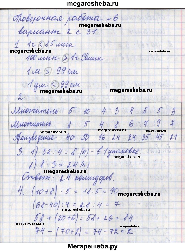 Подробный решебник (ГДЗ) по Математике за 3 (третий) класс проверочные работы - готовый ответ страница - 31. Авторы учебника: Миракова, Никифорова. Издательство: Просвещение 2017-2023.