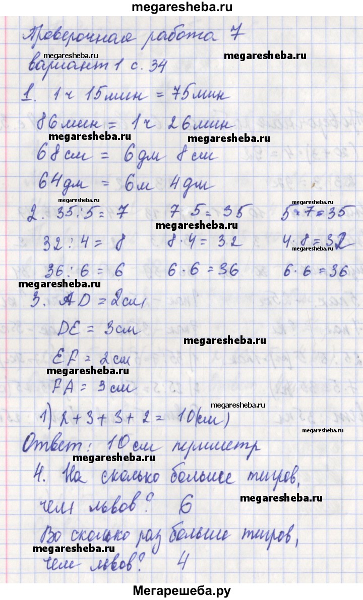Подробный решебник (ГДЗ) по Математике за 3 (третий) класс проверочные работы - готовый ответ страница - 34. Авторы учебника: Миракова, Никифорова. Издательство: Просвещение 2017-2023.