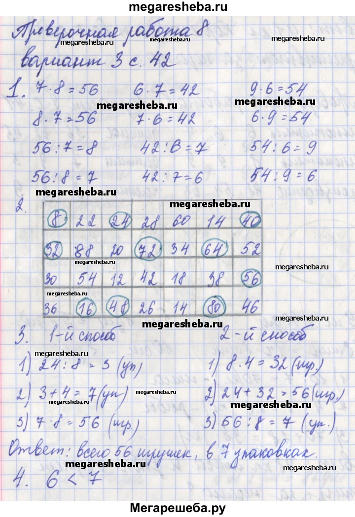 Подробный решебник (ГДЗ) по Математике за 3 (третий) класс проверочные работы - готовый ответ страница - 42-43. Авторы учебника: Миракова, Никифорова. Издательство: Просвещение 2017-2023.