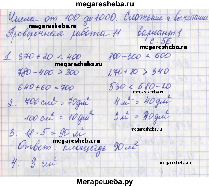 Подробный решебник (ГДЗ) по Математике за 3 (третий) класс проверочные работы - готовый ответ страница - 56. Авторы учебника: Миракова, Никифорова. Издательство: Просвещение 2017-2023.