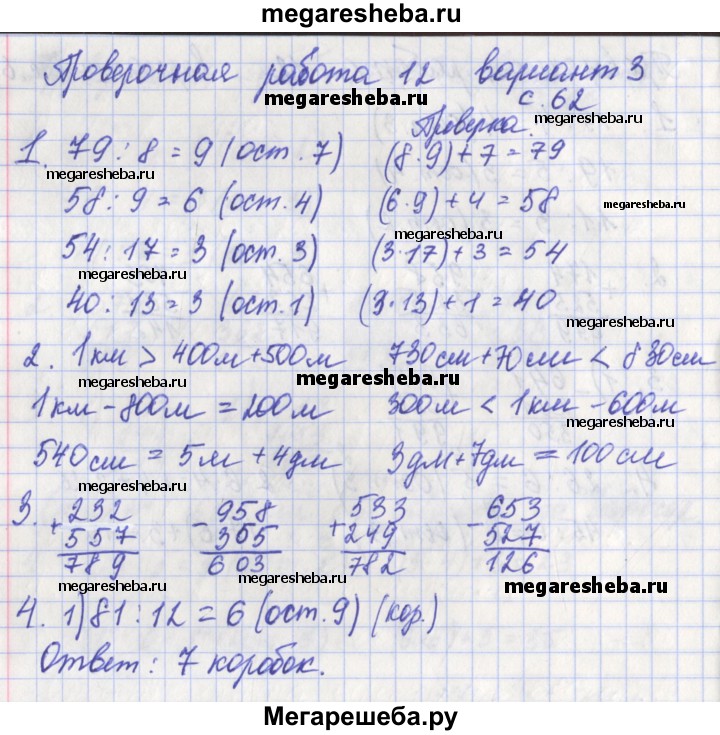 Подробный решебник (ГДЗ) по Математике за 3 (третий) класс проверочные работы - готовый ответ страница - 62. Авторы учебника: Миракова, Никифорова. Издательство: Просвещение 2017-2023.