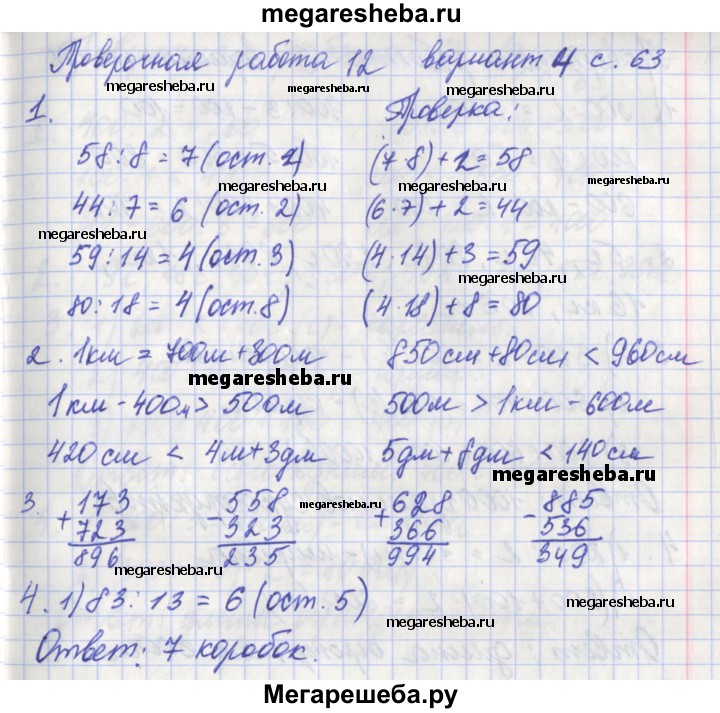 ГДЗ по математике 3 класс Миракова проверочные работы страница - 63