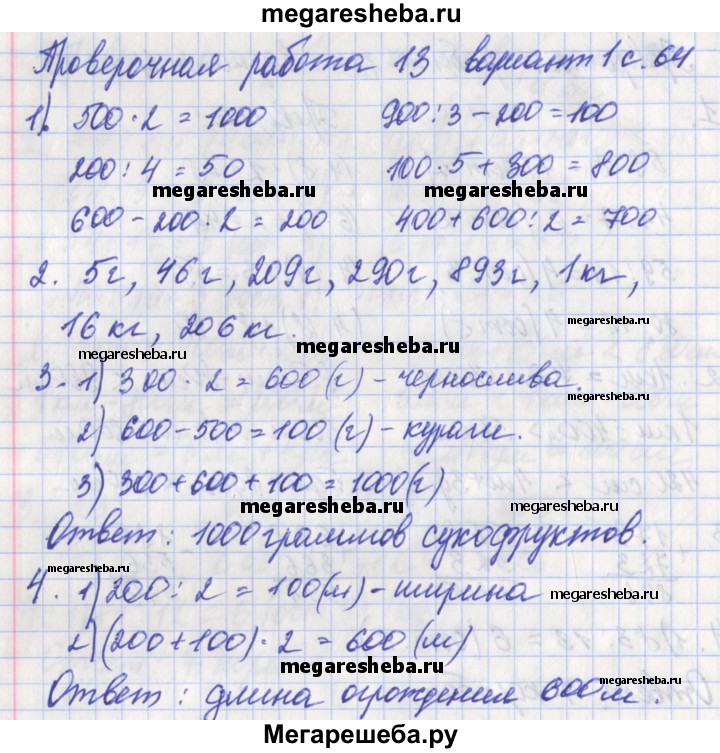 ГДЗ по математике 3 класс Миракова проверочные работы страница - 64