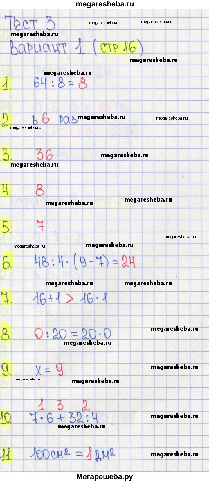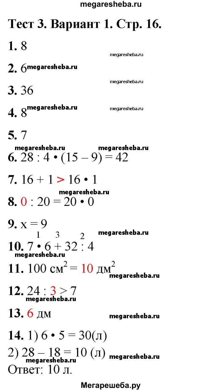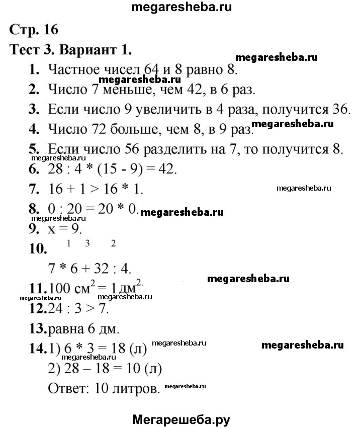 Подробный решебник (ГДЗ) по Математике за 3 (третий) класс тесты - готовый ответ страница - 16. Авторы учебника: Волкова. Издательство: Просвещение 2017-2023.