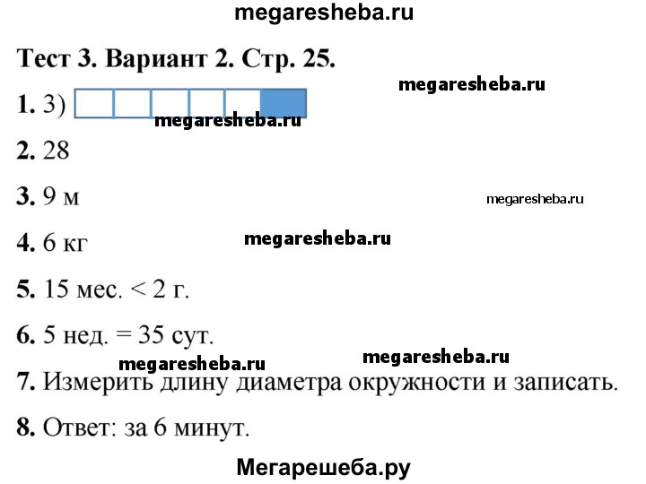 Подробный решебник (ГДЗ) по Математике за 3 (третий) класс тесты - готовый ответ страница - 25. Авторы учебника: Волкова. Издательство: Просвещение 2017-2023.