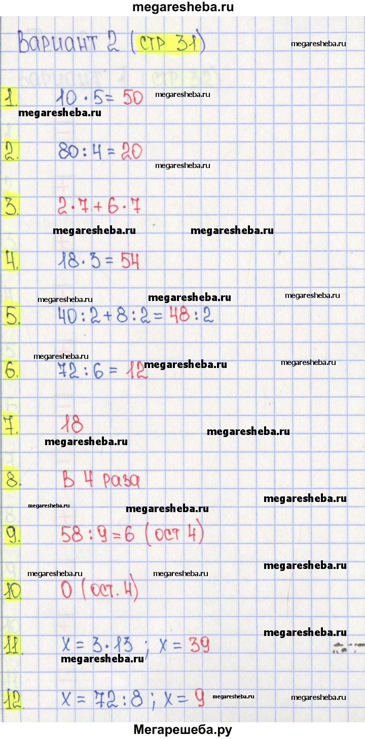 ГДЗ по математике 3 класс Волкова тесты страница - 31