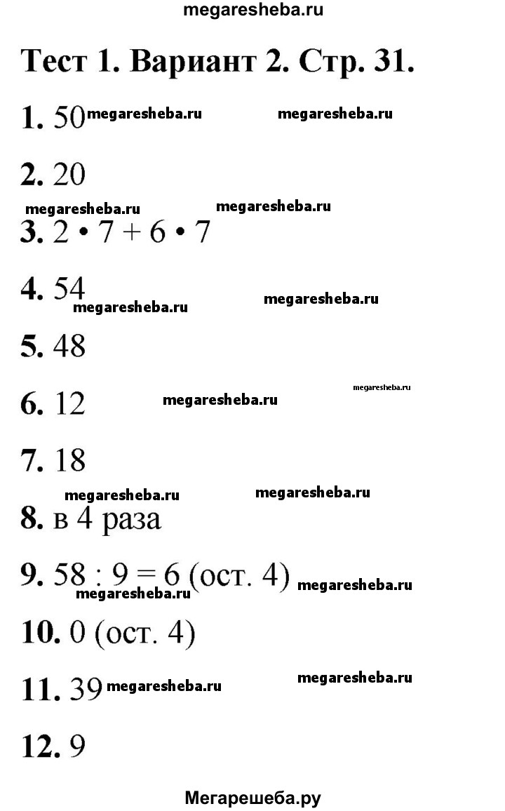 Подробный решебник (ГДЗ) по Математике за 3 (третий) класс тесты - готовый ответ страница - 31. Авторы учебника: Волкова. Издательство: Просвещение 2017-2023.