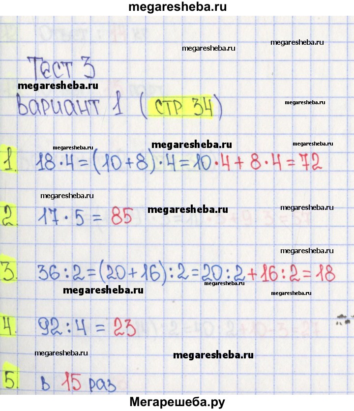 ГДЗ по математике 3 класс Волкова тесты страница - 34