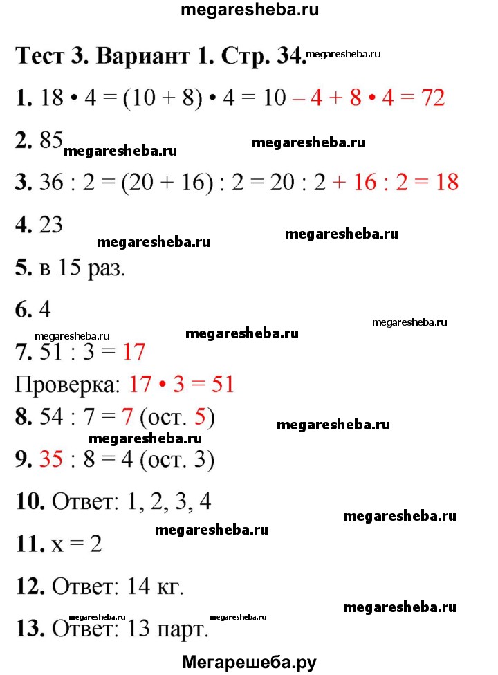 Подробный решебник (ГДЗ) по Математике за 3 (третий) класс тесты - готовый ответ страница - 34. Авторы учебника: Волкова. Издательство: Просвещение 2017-2023.