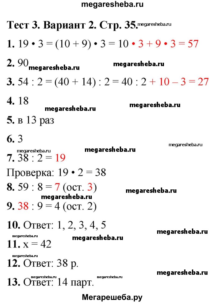 Подробный решебник (ГДЗ) по Математике за 3 (третий) класс тесты - готовый ответ страница - 35. Авторы учебника: Волкова. Издательство: Просвещение 2017-2023.