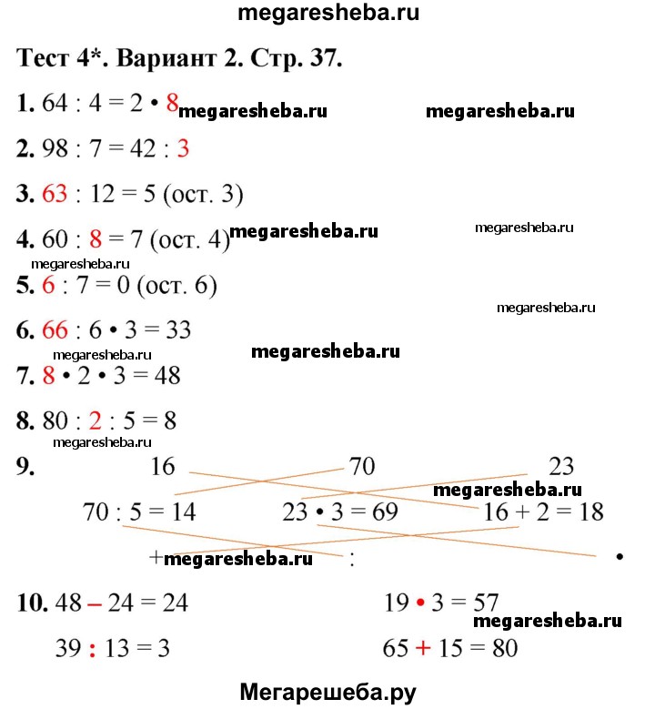 Подробный решебник (ГДЗ) по Математике за 3 (третий) класс тесты - готовый ответ страница - 37. Авторы учебника: Волкова. Издательство: Просвещение 2017-2023.