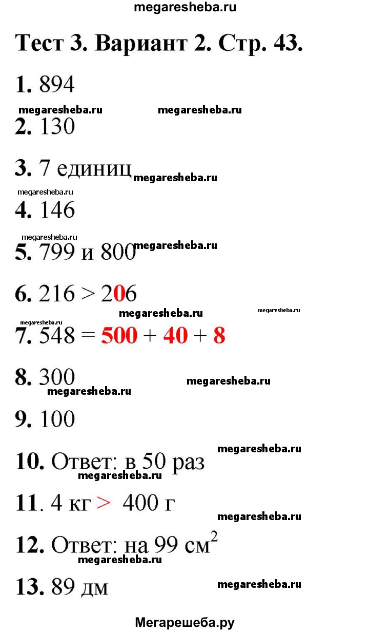 Подробный решебник (ГДЗ) по Математике за 3 (третий) класс тесты - готовый ответ страница - 43. Авторы учебника: Волкова. Издательство: Просвещение 2017-2023.