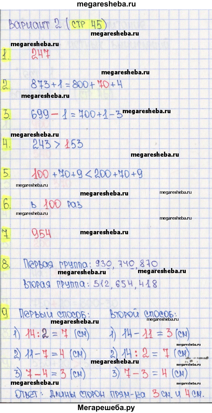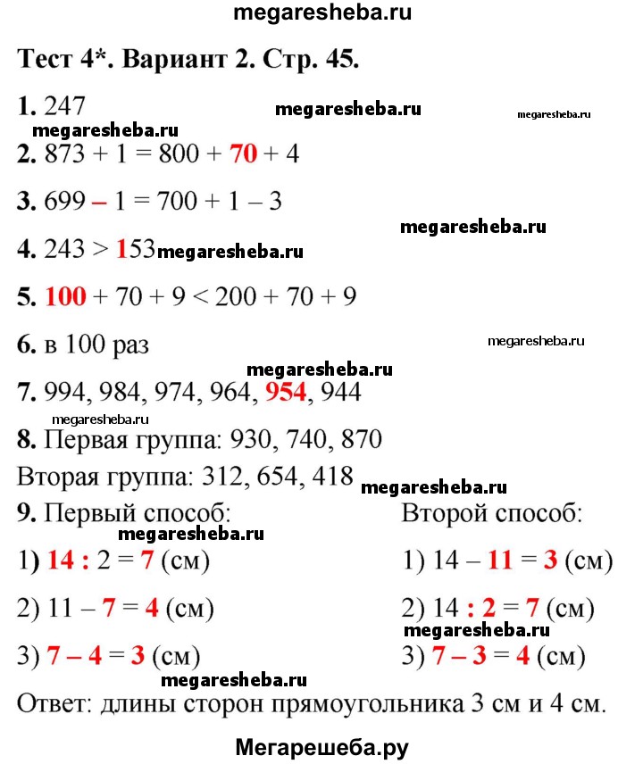 Подробный решебник (ГДЗ) по Математике за 3 (третий) класс тесты - готовый ответ страница - 45. Авторы учебника: Волкова. Издательство: Просвещение 2017-2023.