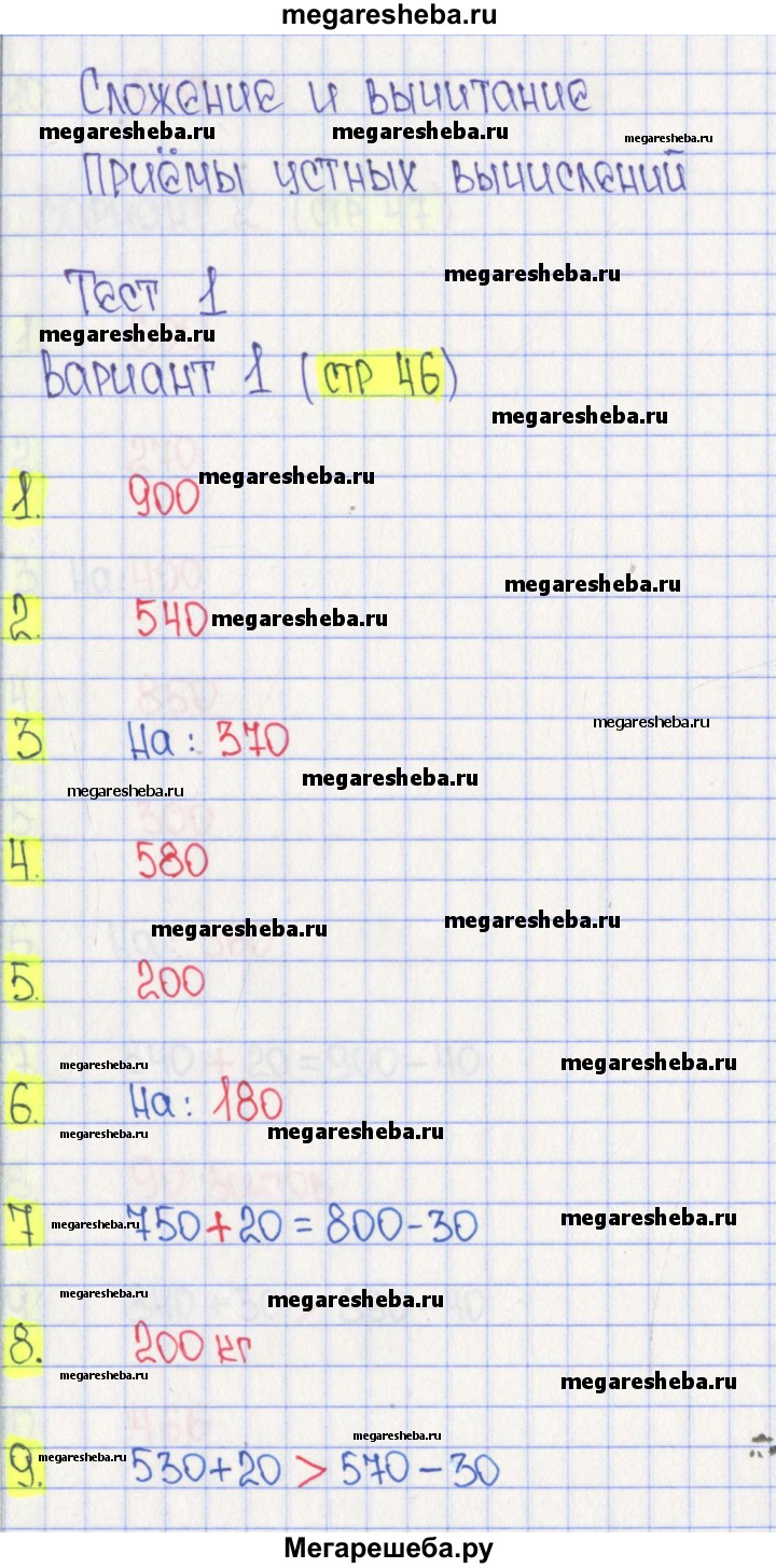 Подробный решебник (ГДЗ) по Математике за 3 (третий) класс тесты - готовый ответ страница - 46. Авторы учебника: Волкова. Издательство: Просвещение 2017-2023.