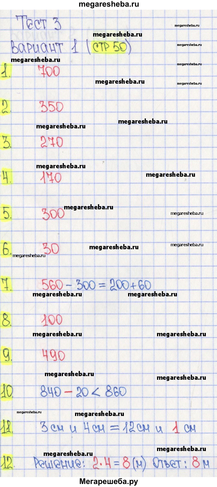 ГДЗ по математике 3 класс Волкова тесты страница - 50