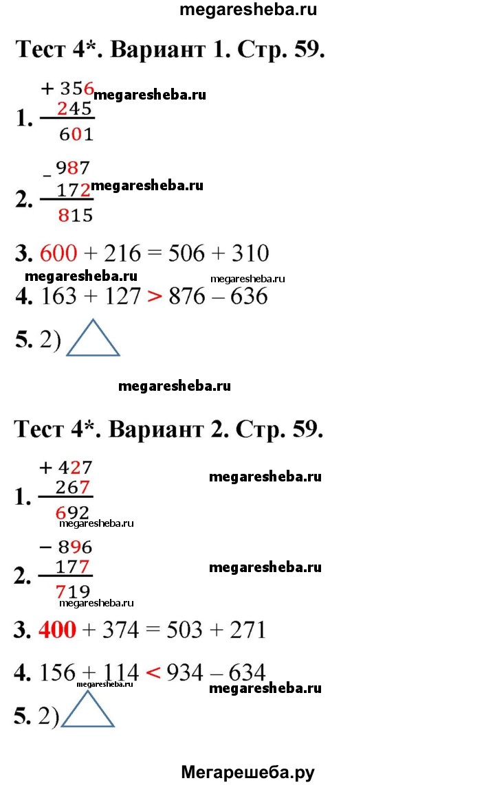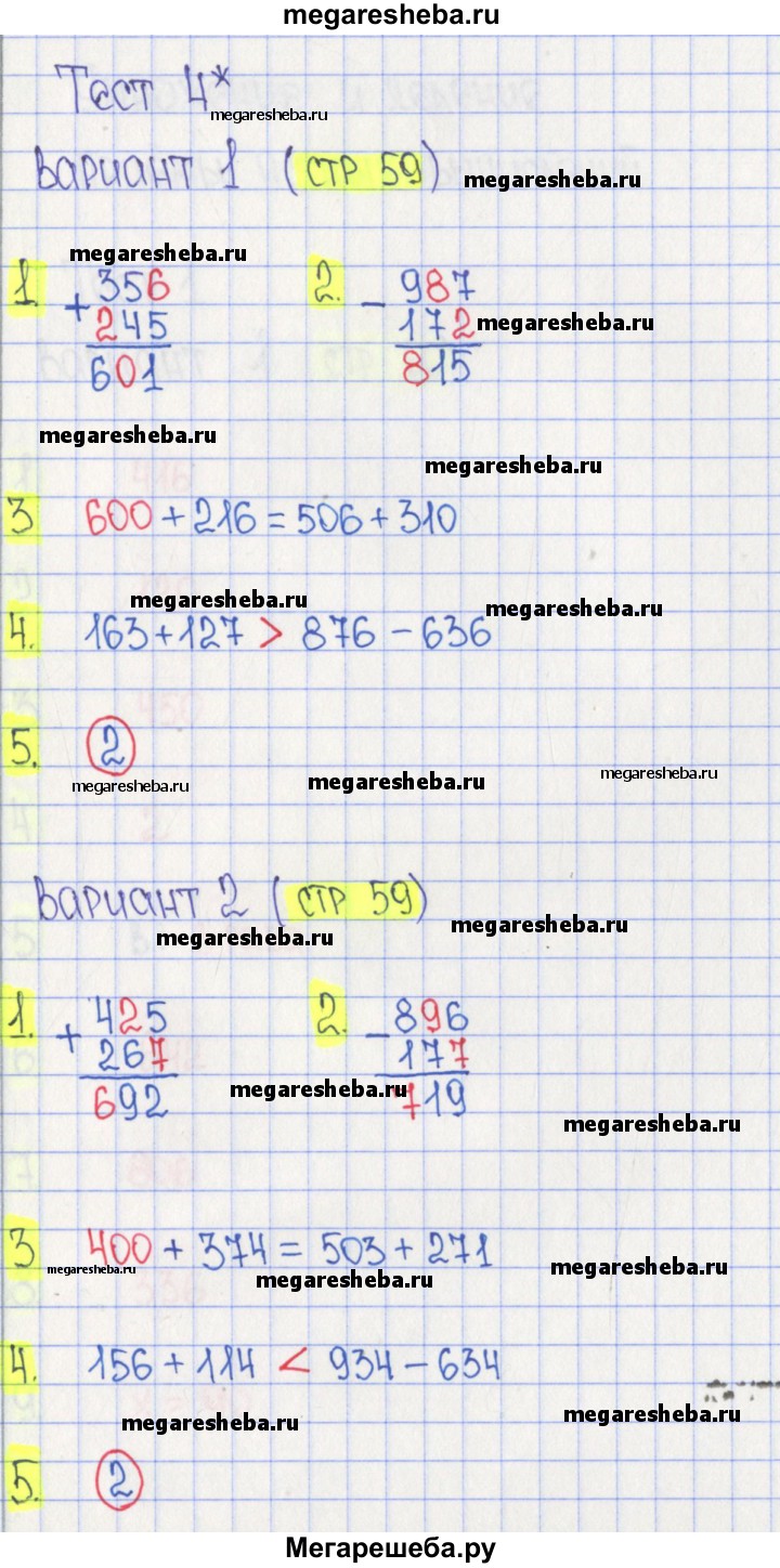 ГДЗ по математике 3 класс Волкова тесты страница - 59