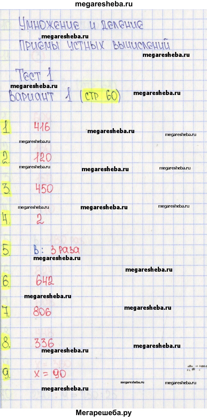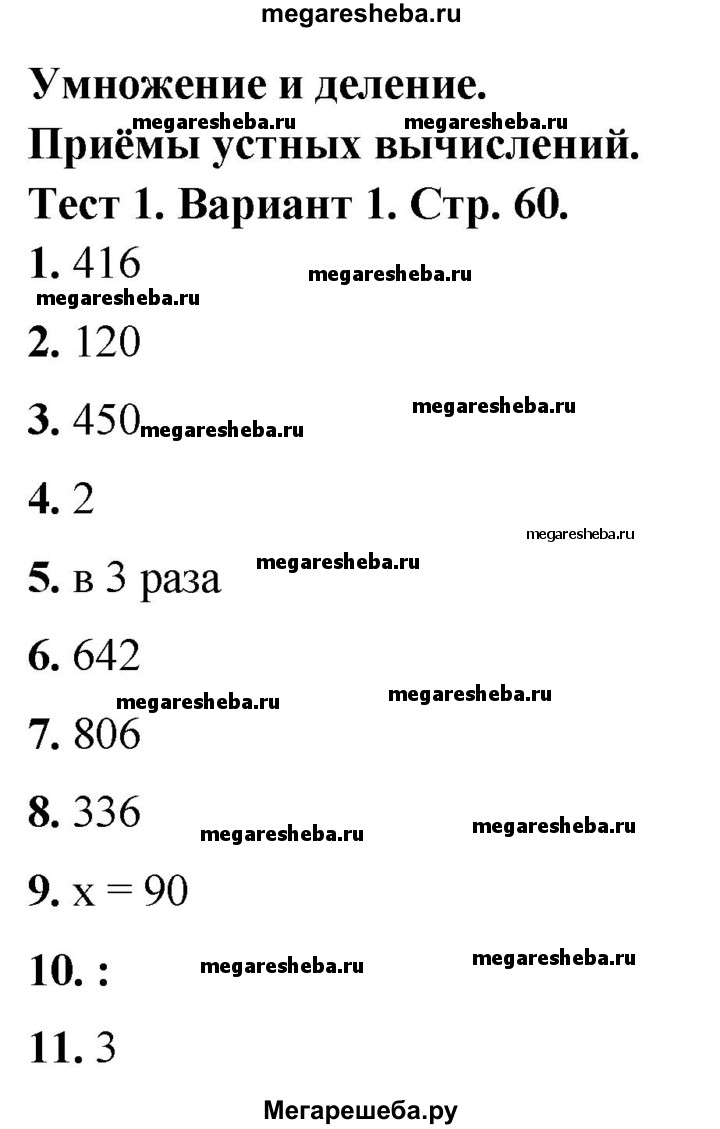 Подробный решебник (ГДЗ) по Математике за 3 (третий) класс тесты - готовый ответ страница - 60. Авторы учебника: Волкова. Издательство: Просвещение 2017-2023.