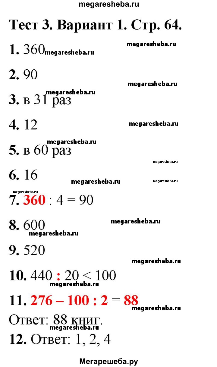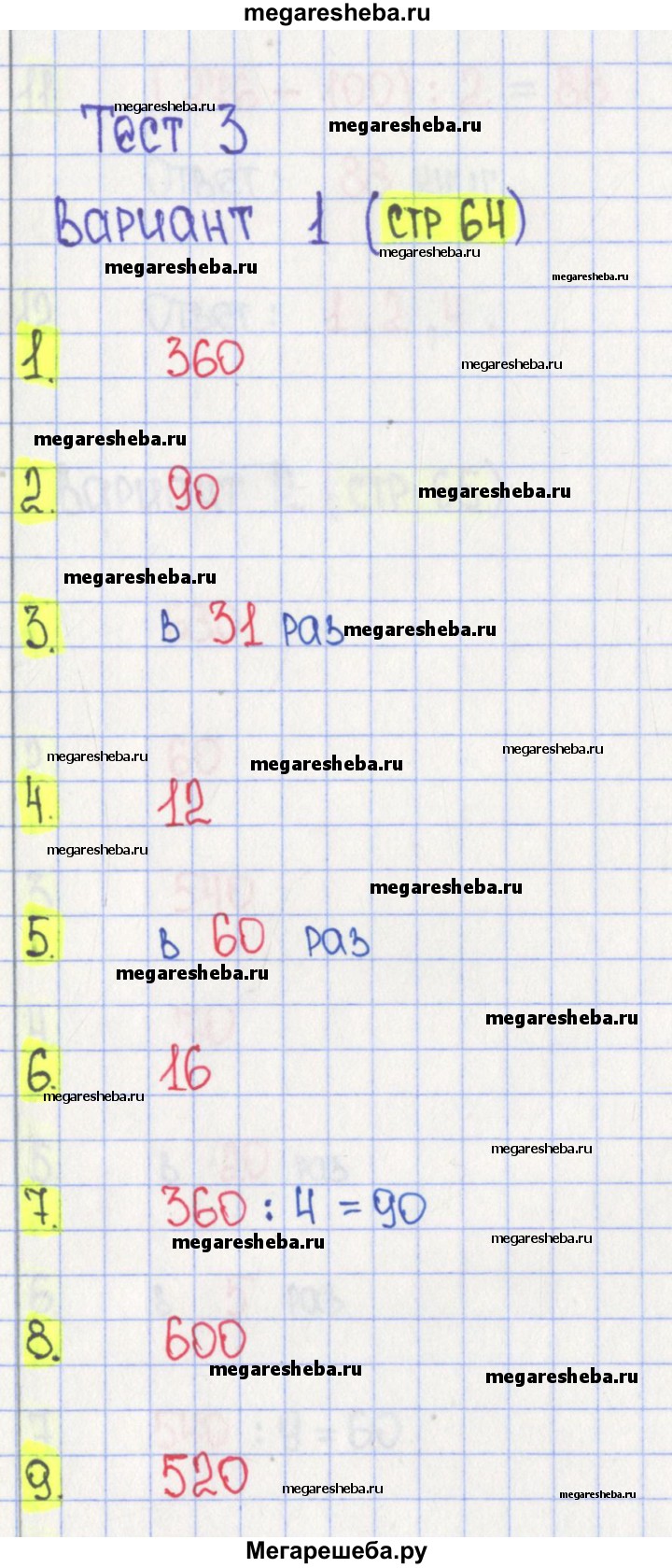 ГДЗ по математике 3 класс Волкова тесты страница - 64