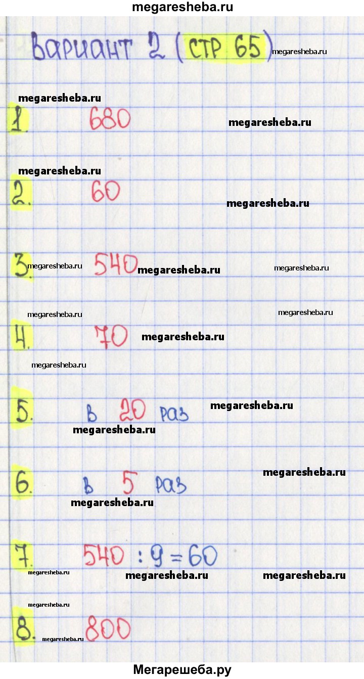 ГДЗ по математике 3 класс Волкова тесты страница - 65