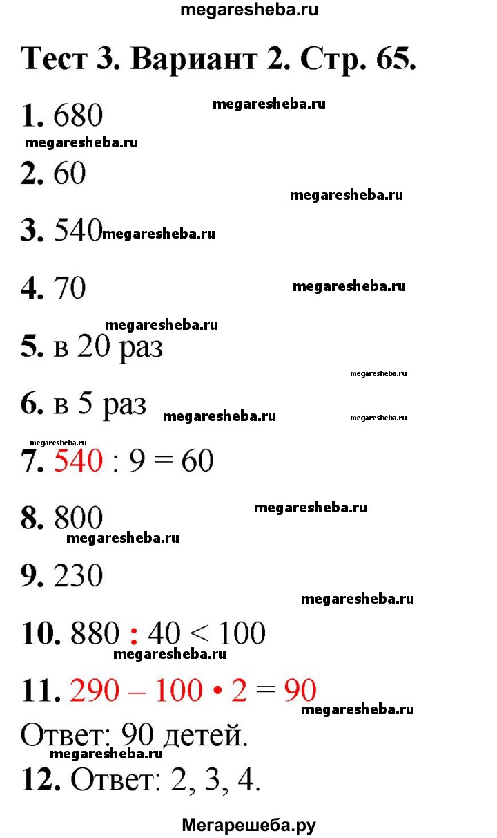 Подробный решебник (ГДЗ) по Математике за 3 (третий) класс тесты - готовый ответ страница - 65. Авторы учебника: Волкова. Издательство: Просвещение 2017-2023.