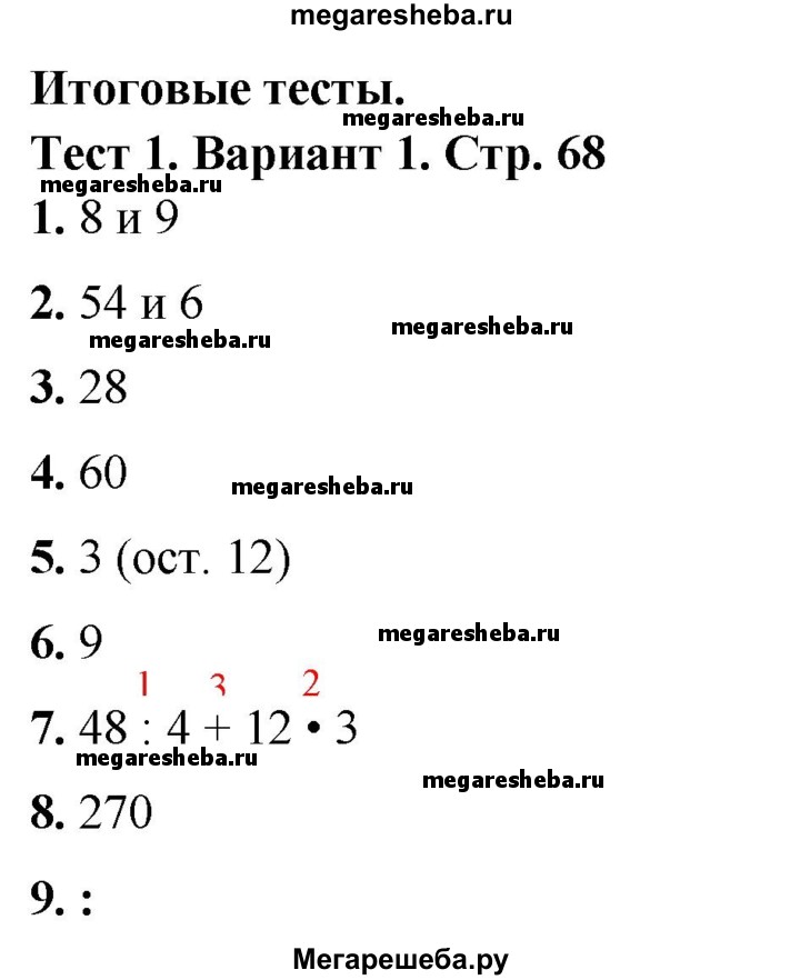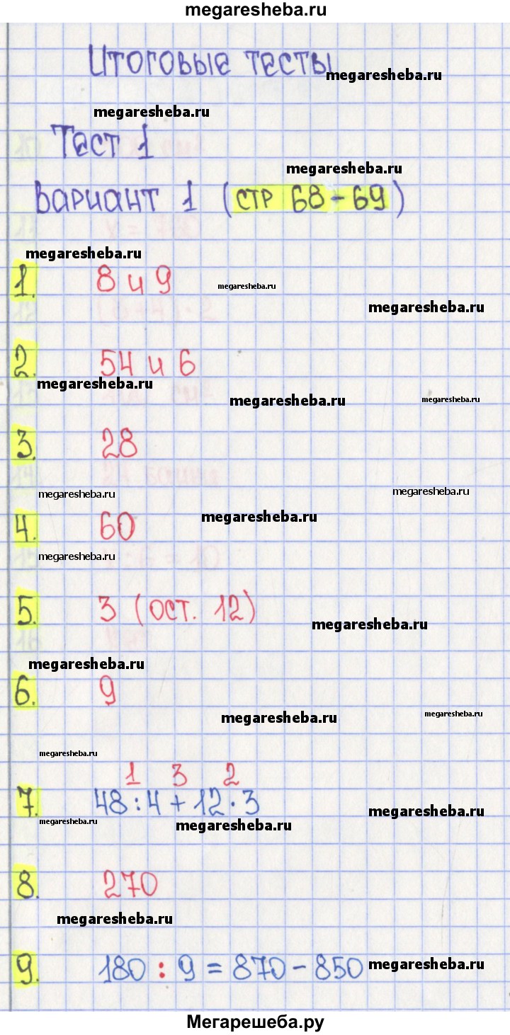 Подробный решебник (ГДЗ) по Математике за 3 (третий) класс тесты - готовый ответ страница - 68. Авторы учебника: Волкова. Издательство: Просвещение 2017-2023.