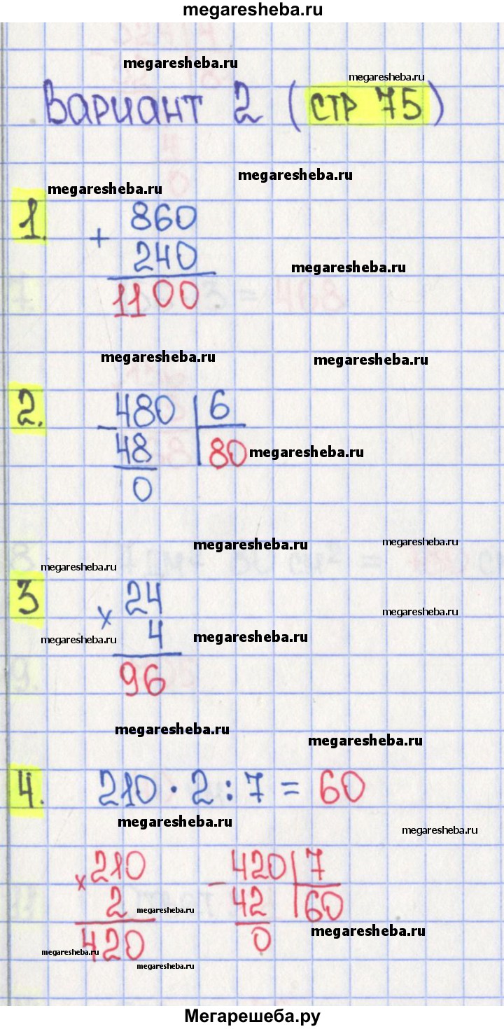 Подробный решебник (ГДЗ) по Математике за 3 (третий) класс тесты - готовый ответ страница - 75. Авторы учебника: Волкова. Издательство: Просвещение 2017-2023.