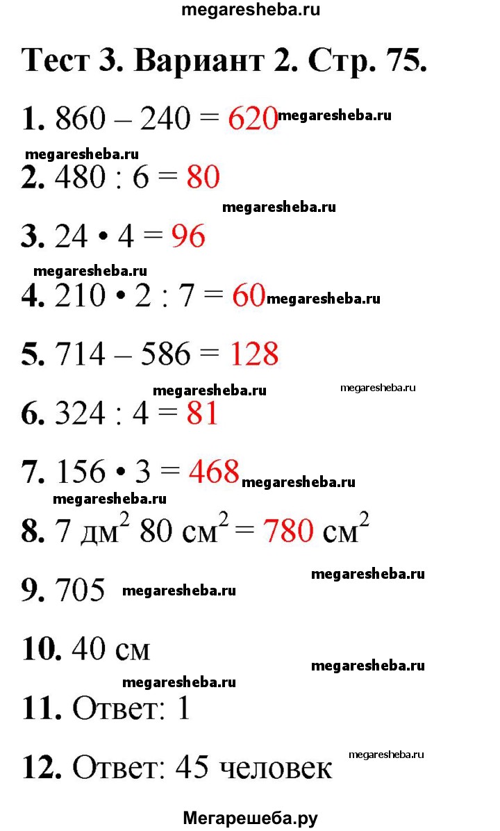 ГДЗ по математике 3 класс Волкова тесты страница - 75