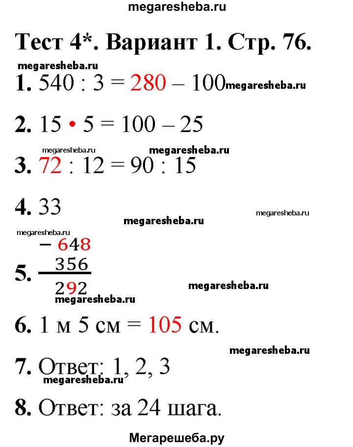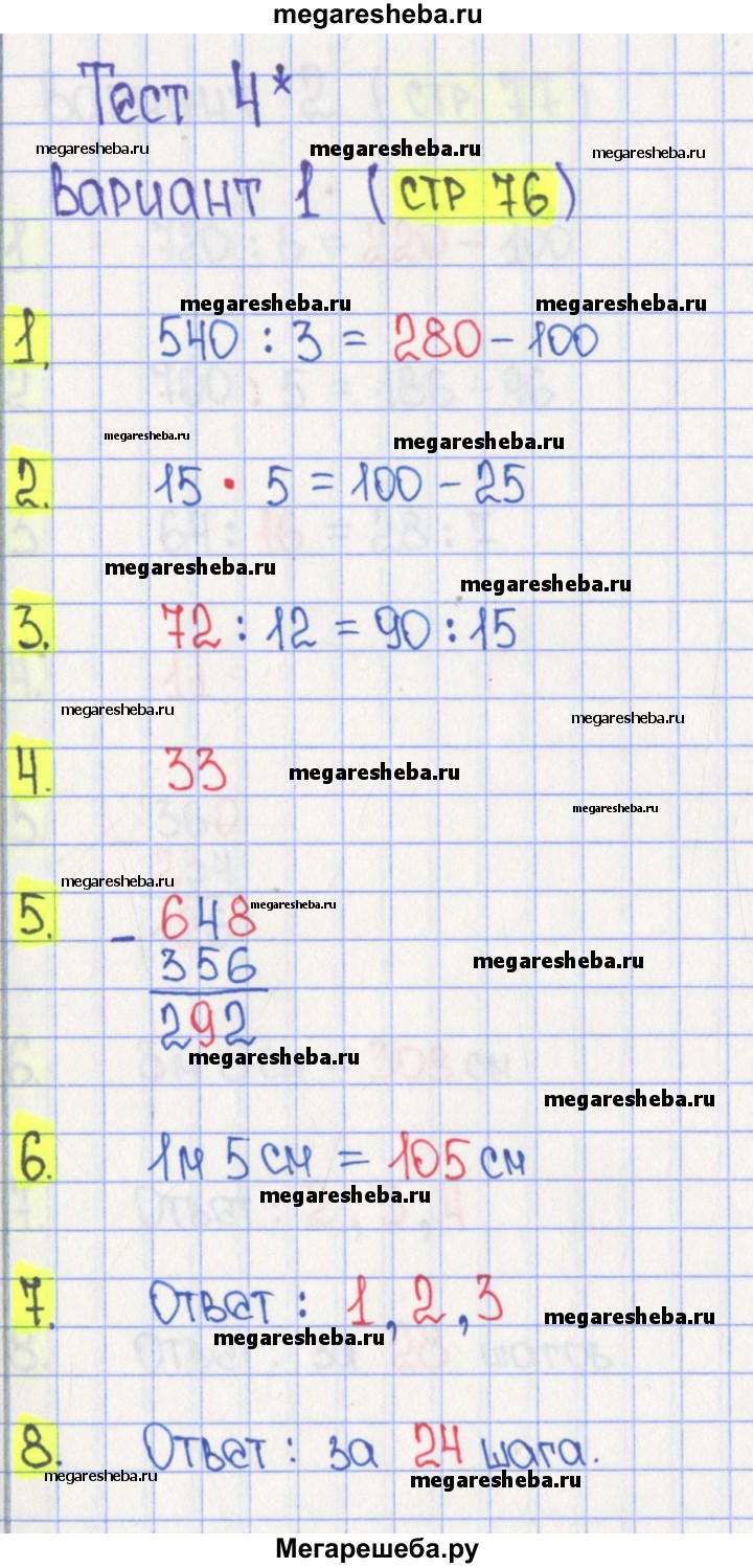 Подробный решебник (ГДЗ) по Математике за 3 (третий) класс тесты - готовый ответ страница - 76. Авторы учебника: Волкова. Издательство: Просвещение 2017-2023.