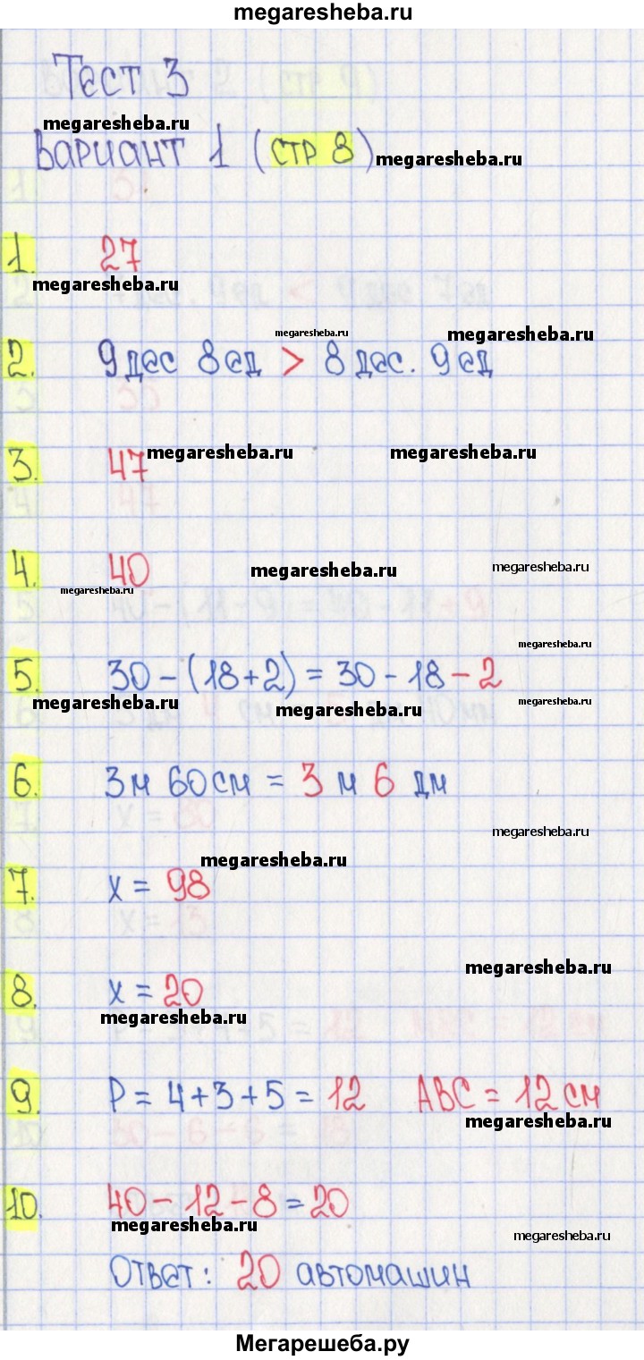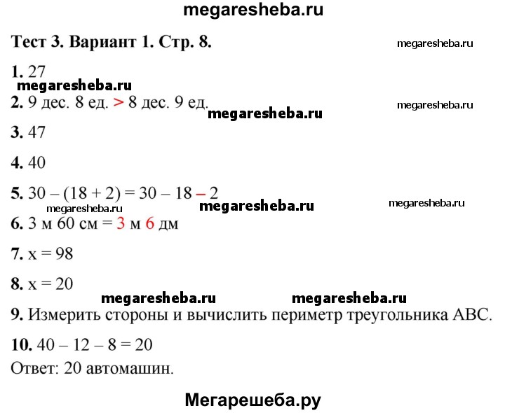 Подробный решебник (ГДЗ) по Математике за 3 (третий) класс тесты - готовый ответ страница - 8. Авторы учебника: Волкова. Издательство: Просвещение 2017-2023.
