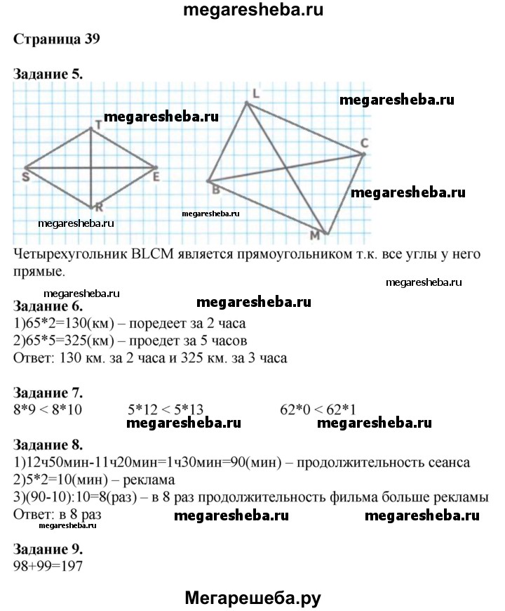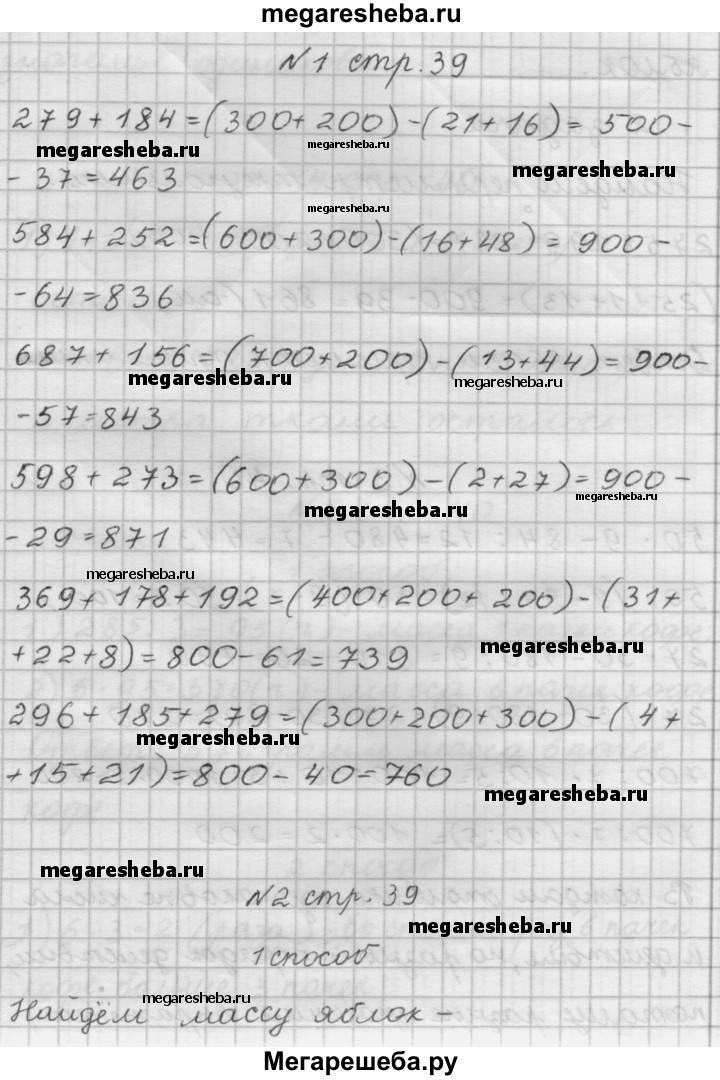 ГДЗ по математике 4 класс Дорофеев часть 1. страница - 39