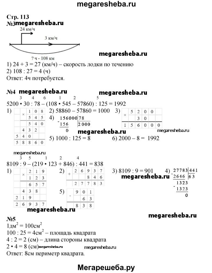 ГДЗ по математике 4 класс Дорофеев часть 2. страница - 113