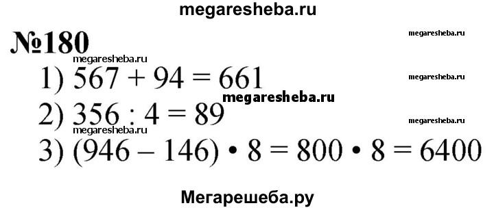 Подробный решебник (ГДЗ) по Математике за 4 (четвертый) класс - готовый ответ часть 1 упражнение - 180. Авторы учебника: Моро, Бантова, Бельтюкова. Издательство: Просвещение 2015-2025.