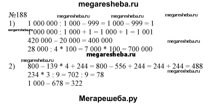 Подробный решебник (ГДЗ) по Математике за 4 (четвертый) класс - готовый ответ часть 1 упражнение - 188. Авторы учебника: Моро, Бантова, Бельтюкова. Издательство: Просвещение 2015-2025.