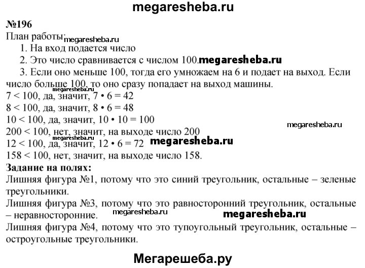 Подробный решебник (ГДЗ) по Математике за 4 (четвертый) класс - готовый ответ часть 1 упражнение - 196. Авторы учебника: Моро, Бантова, Бельтюкова. Издательство: Просвещение 2015-2025.