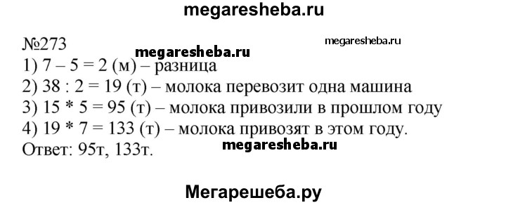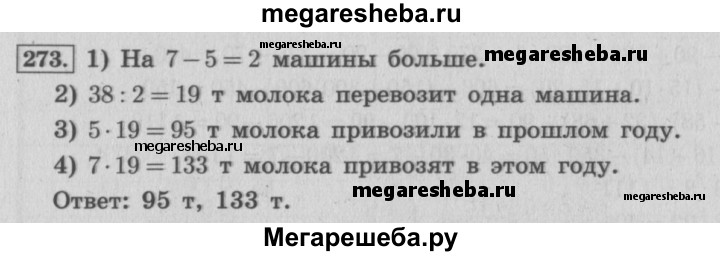 Подробный решебник (ГДЗ) по Математике за 4 (четвертый) класс - готовый ответ часть 2 упражнение - 273. Авторы учебника: Моро, Бантова, Бельтюкова. Издательство: Просвещение 2015-2025.