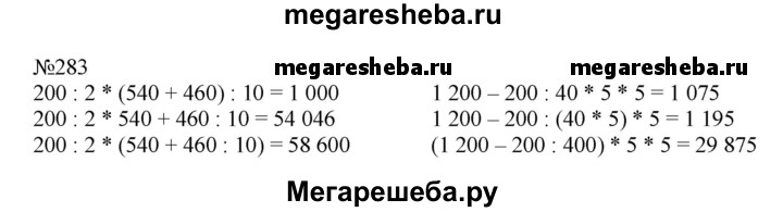Подробный решебник (ГДЗ) по Математике за 4 (четвертый) класс - готовый ответ часть 2 упражнение - 283. Авторы учебника: Моро, Бантова, Бельтюкова. Издательство: Просвещение 2015-2025.