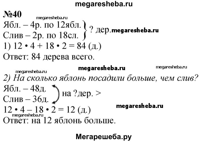 Подробный решебник (ГДЗ) по Математике за 4 (четвертый) класс - готовый ответ часть 1 упражнение - 40. Авторы учебника: Моро, Бантова, Бельтюкова. Издательство: Просвещение 2015-2025.