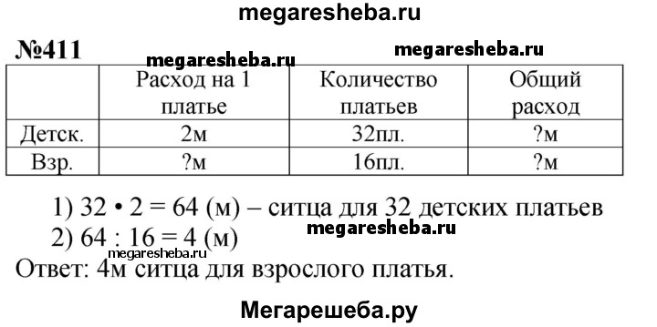 Подробный решебник (ГДЗ) по Математике за 4 (четвертый) класс - готовый ответ часть 1 упражнение - 411. Авторы учебника: Моро, Бантова, Бельтюкова. Издательство: Просвещение 2015-2025.