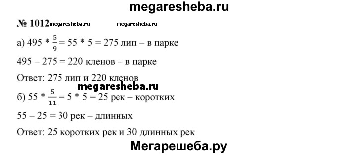 Подробный решебник (ГДЗ) по Математике за 5 (пятый) класс - готовый ответ глава 11 упражнение - 11.13 (1012). Авторы учебника: Дорофеев, Шарыгин, Суворова, Базовый уровень. Издательство: Просвещение 2015-2023.