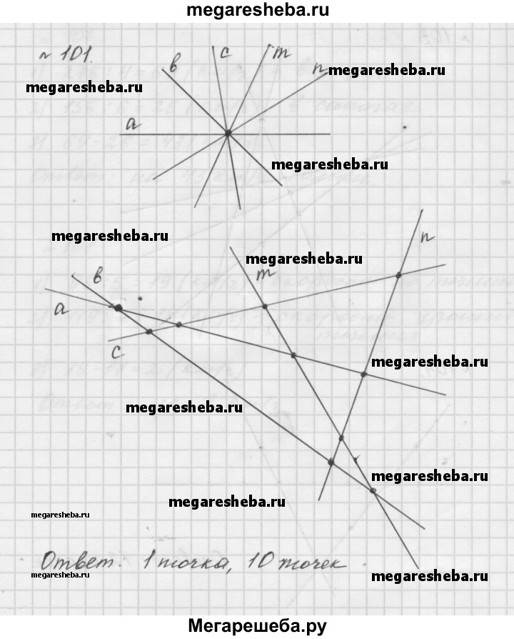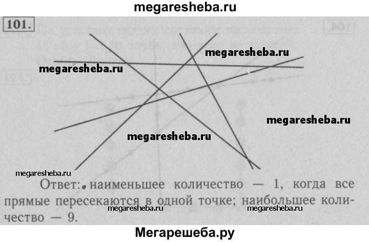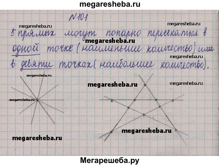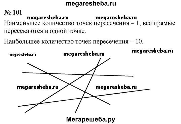 101. На плоскости проведено пять попарно пересекающихся прямых. Каким может оказаться наименьшее количество точек пересечения этих прямых? Наибольшее количество?