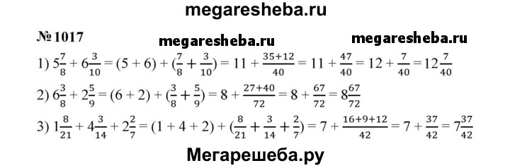 Подробный решебник (ГДЗ) по Математике за 5 (пятый) класс - готовый ответ номер - 1017. Авторы учебника: Мерзляк, Полонский, Якир, Базовый уровень. Издательство: Вентана-граф 2016-2023.