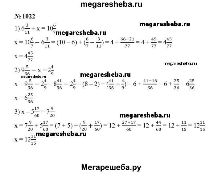Подробный решебник (ГДЗ) по Математике за 5 (пятый) класс - готовый ответ номер - 1022. Авторы учебника: Мерзляк, Полонский, Якир, Базовый уровень. Издательство: Вентана-граф 2016-2023.