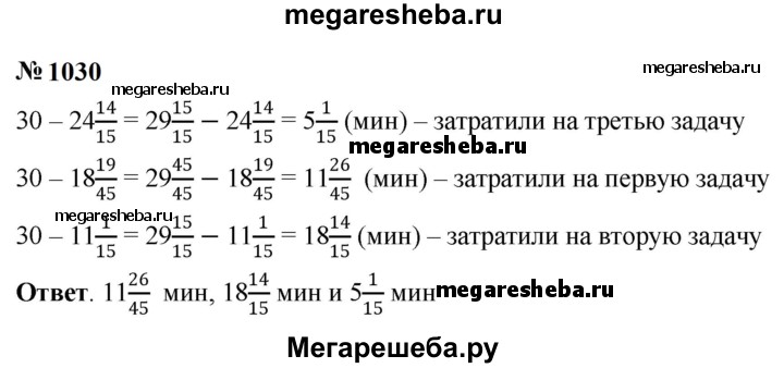 Подробный решебник (ГДЗ) по Математике за 5 (пятый) класс - готовый ответ номер - 1030. Авторы учебника: Мерзляк, Полонский, Якир, Базовый уровень. Издательство: Вентана-граф 2016-2023.