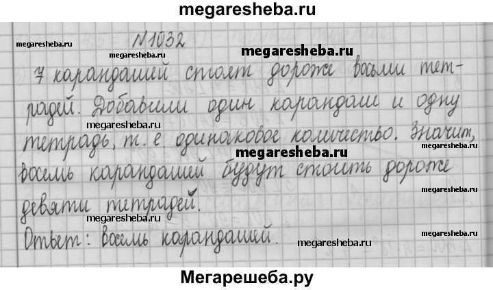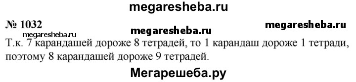 1032. Семь карандашей стоят дороже восьми тетрадей. Что дороже: восемь карандашей или девять тетрадей?