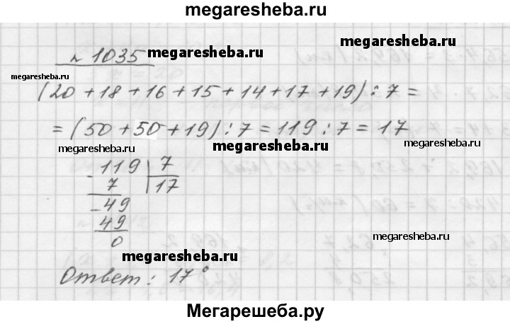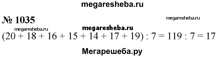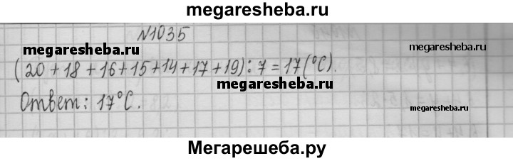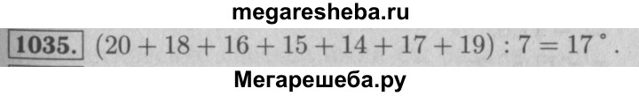 1035. В течение недели в 8 ч утра Саша измерял температуру воздуха. Он получил такие результаты: 20 °С; 18 °С; 16 °С; 15 °С; 14 °С; 17 °С; 19 °С. Найдите среднее значение проведённых измерений.